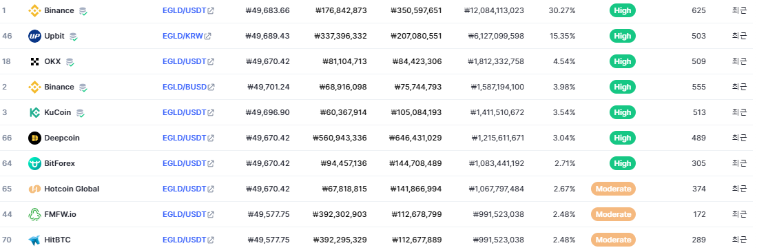 멀티버스엑스(EGLD) 상장 거래소